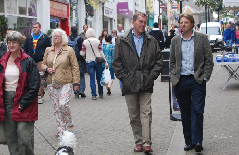Tony Hogg, the Conservative candidate for Police and Crime Commissioner (on the left in photo), visited the constituency on Monday September 17th. He spent some time in the morning with Walter Sanger in St Keverne (Walter is standing in the upcoming Unitary Council by-election in St Keverne & Meneage) and then went over to Penzance to spend some time in the town, visiting shoo keepers and stopping to talk with shoppers in Causewayhead.
